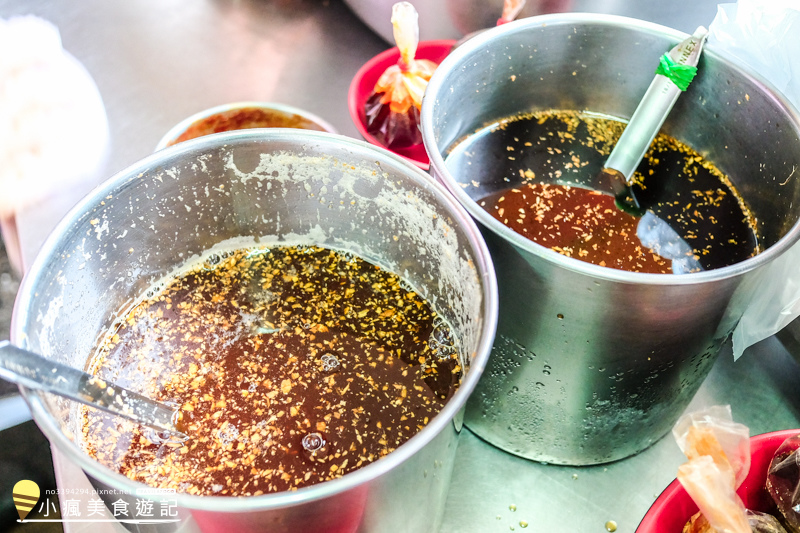 醬料上面一顆顆的是蒜頭,蒜味相當提味且濃郁,